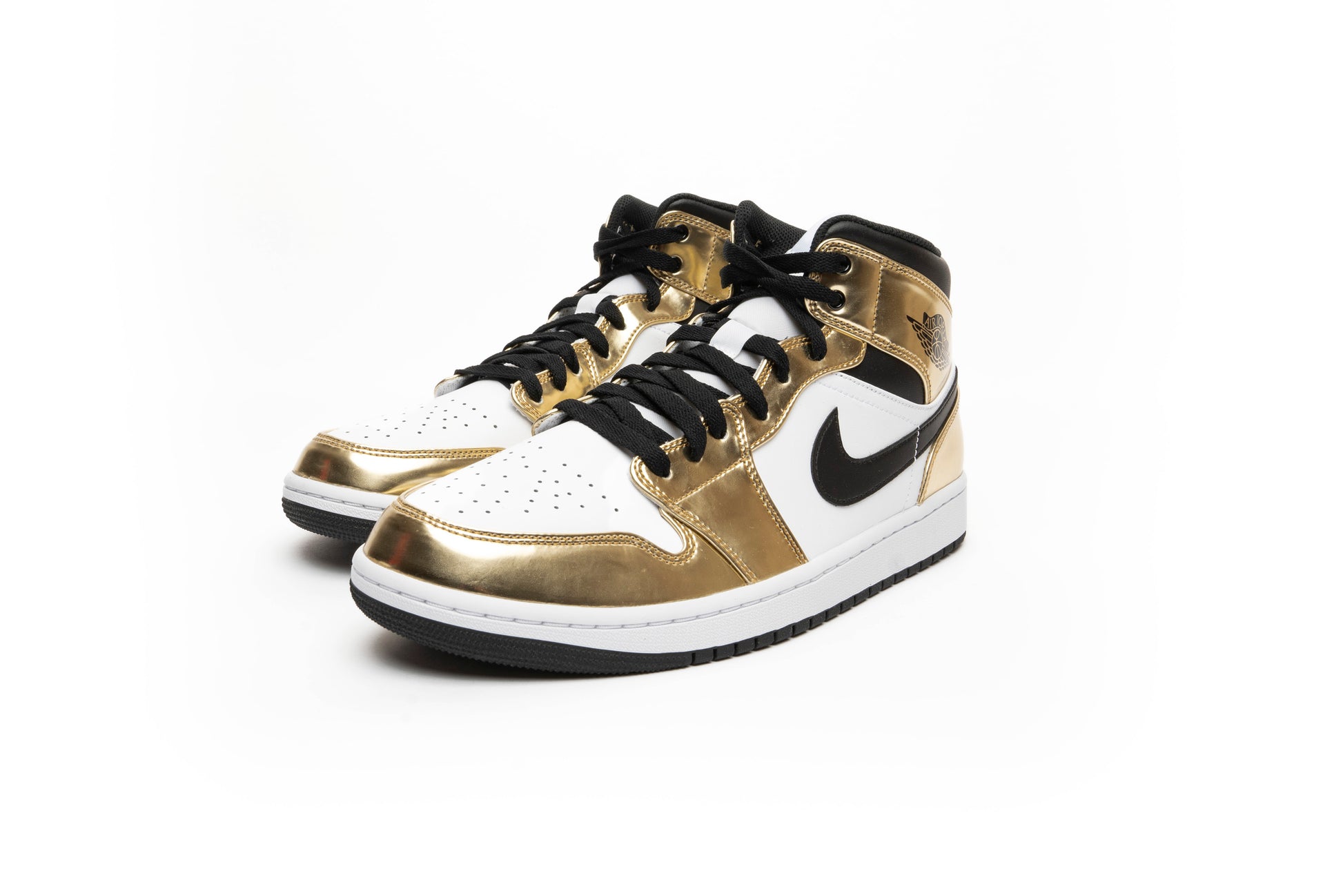 The Air Jordan 1 Mid got the golden treatment in addition to the Jordan 1 High in 2020. This Jordan Mid Metallic Gold model dons a shiny and reflective upper that is sure to make anyone take a second look at your feet