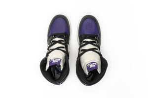 Small footers need heat too, so why not cop the Air Jordan 1 Retro High Court Purple? Giving off the same vibe as the "Shattered Backboard", the silhouette has a leather upper in black, sail, and court purple